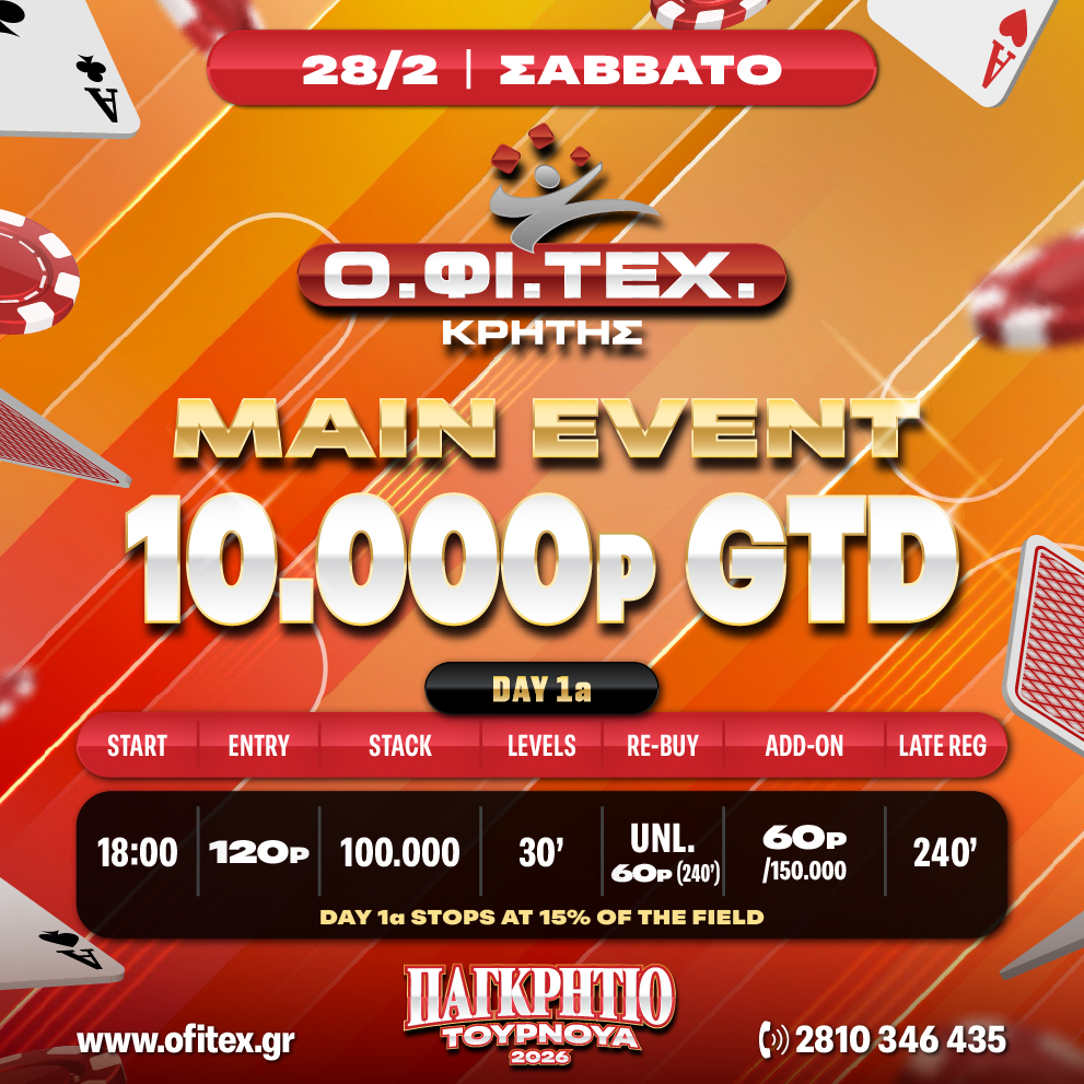 Παγκρήτιο Τουρνουα 2026 Day 1A – 10.000p GTD