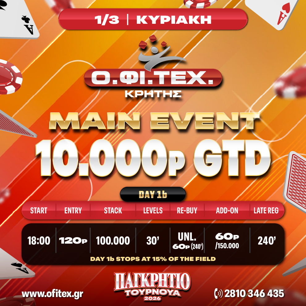 Παγκρήτιο Τουρνουα 2026 Day 1B – 10.000p GTD
