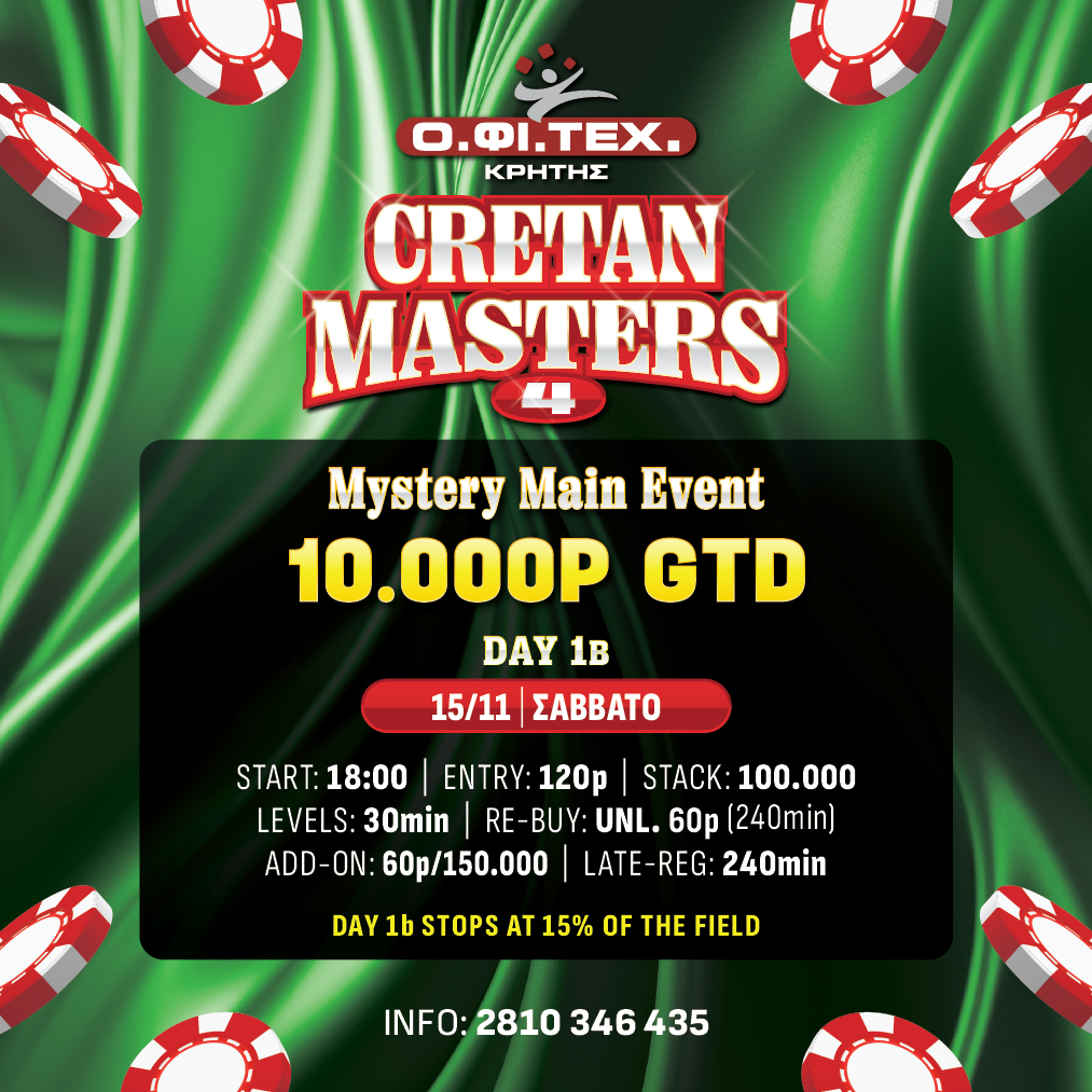 Mystery Main Event Day 1B – Cretan Masters IIII – 10.000p GTD